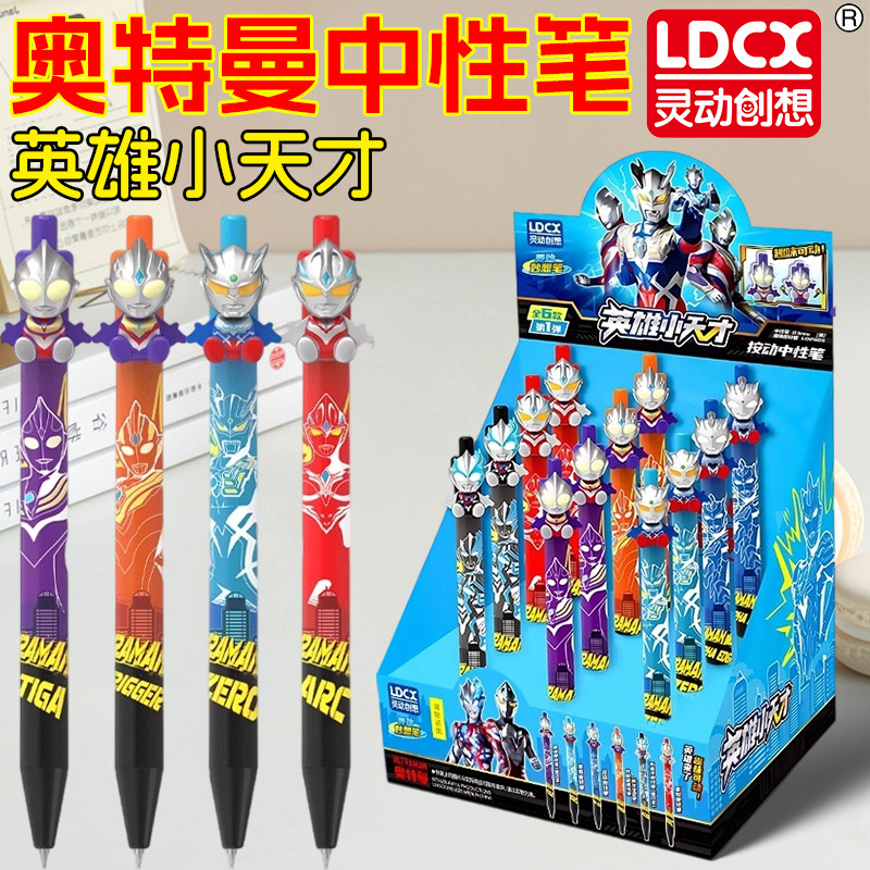 灵动创想迪迦赛罗奥特曼英雄小天才中性笔文具按动黑色签字笔学生