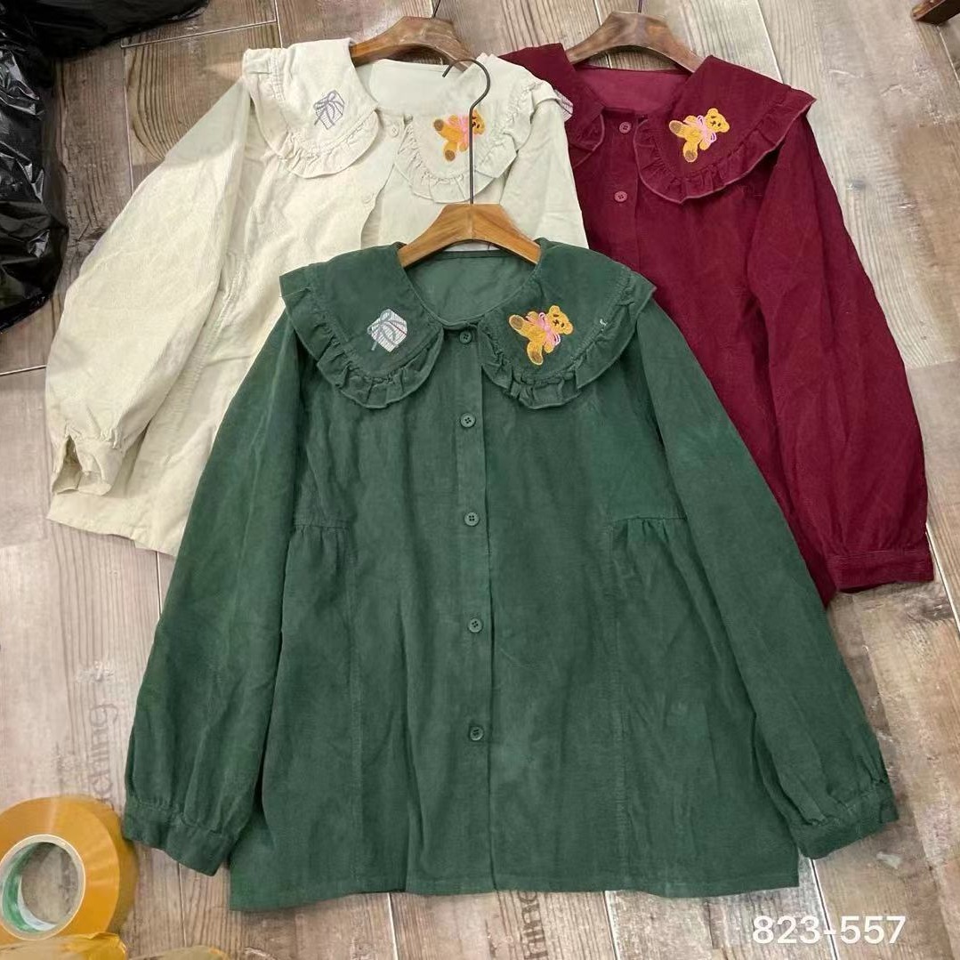 Baju Wanita lengan panjang Jepang, pakaian Atasan Wanita lengan panjang, katun dan linen, telinga besar, manis, musim semi, baru, 2024