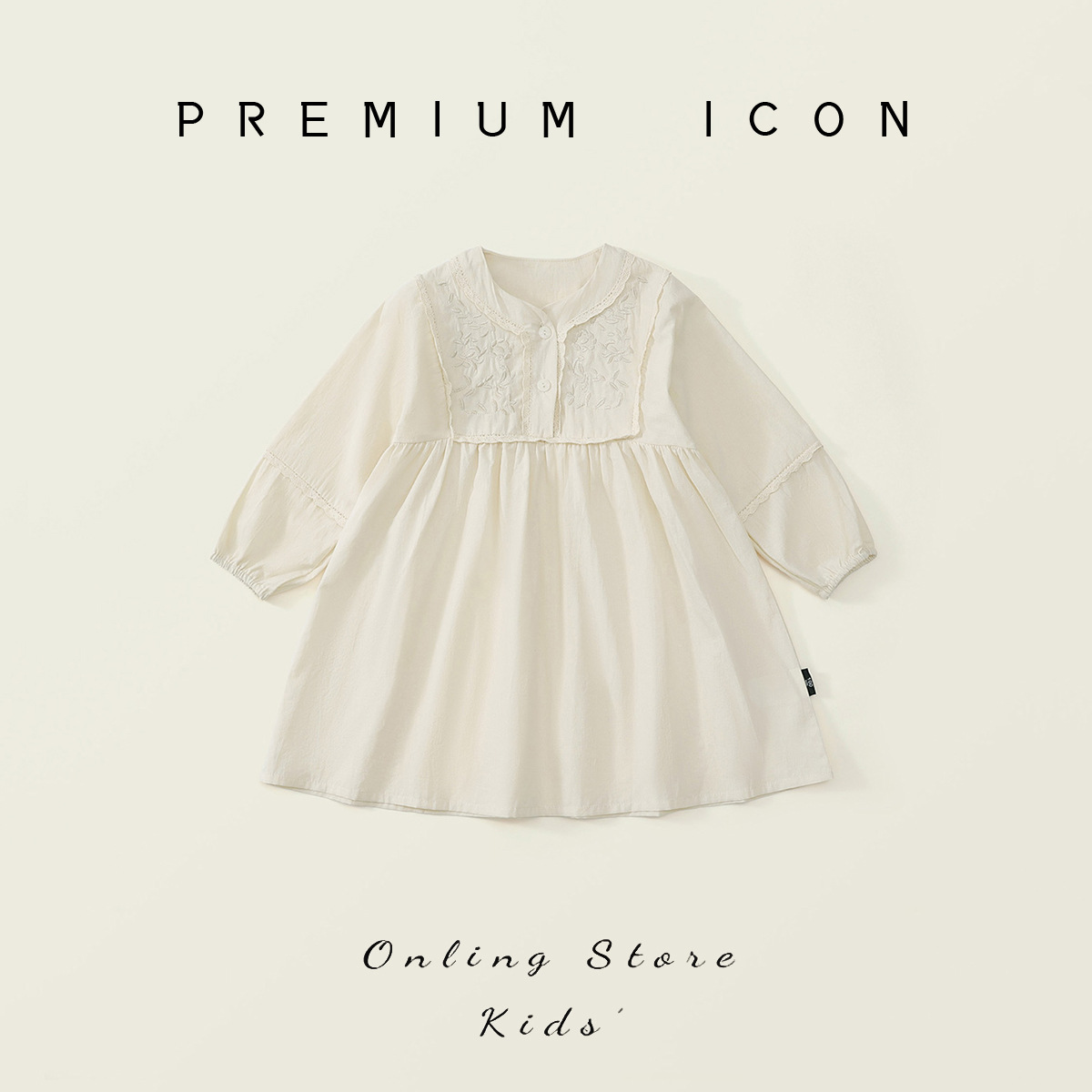 Gaun Bordir Anak Perempuan Model Baru Musim Gugur 2025 Rok Putri Lengan Panjang Gaya Istana Retro Gaya Prancis Anak Perempuan Pengganti Rambut