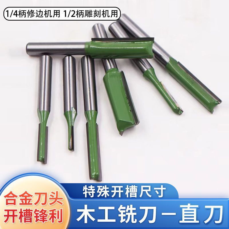 修边机刀头台面铣底刀新木工双刃直刀电木铣开槽刀铣刀套装1/4柄
