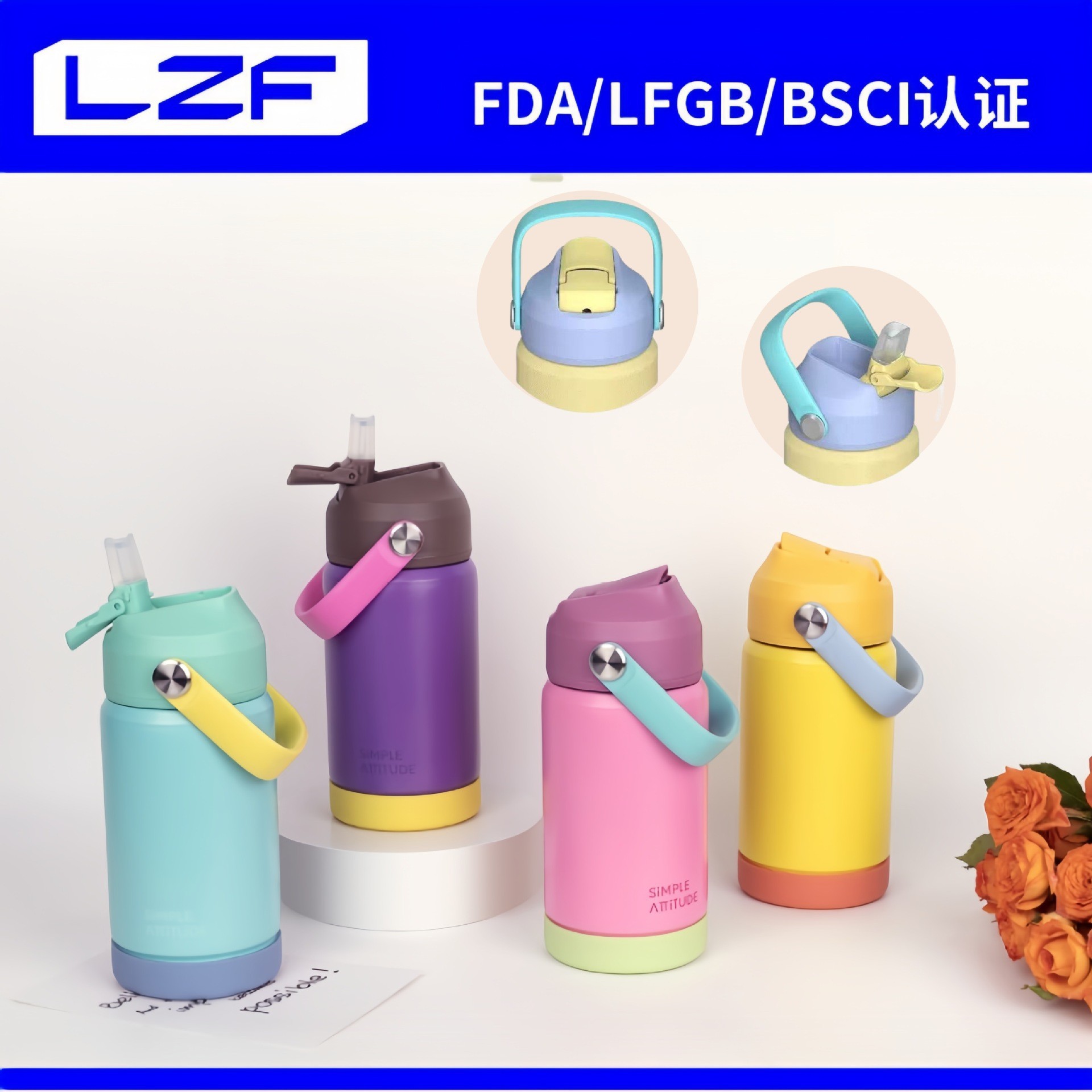Hongling Gelas Termos Keramik Anak-anak 304 Gelas Sedotan Stainless Steel 12oz Nilai Wajah Tinggi Anti Jatuh Kartun Lucu