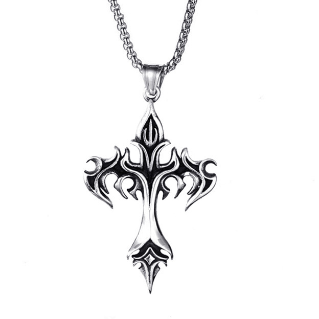 2024热卖外贸不锈钢项链火焰复古十字架合金铸造男士吊坠项链配饰