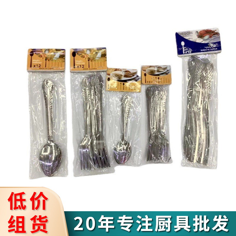 Peralatan makan portabel lintas batas 20g, pisau sendok garpu pisau rumah tangga 12 buah/pak sendok baja tahan karat setelan pabrik grosir