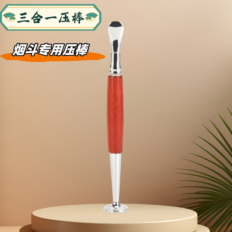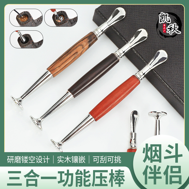 源头工厂木质压棒 创意镂空三合一压棒锌合金刮刀挑针烟斗配件