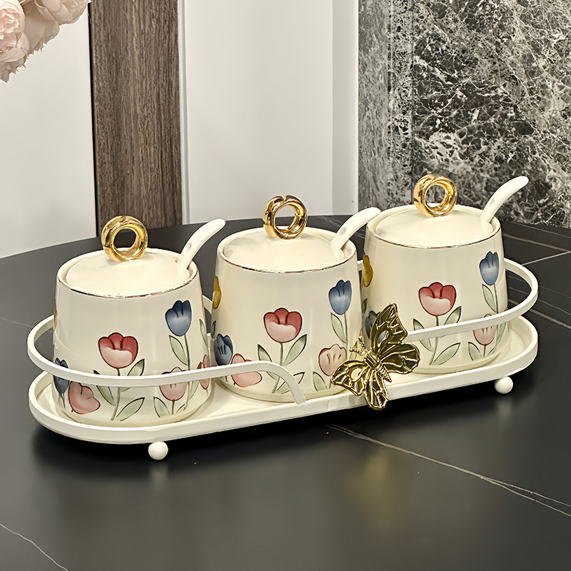 新陶轻奢调味罐套装厨房陶瓷盐罐味精香料收纳盒调料组合装高颜值
