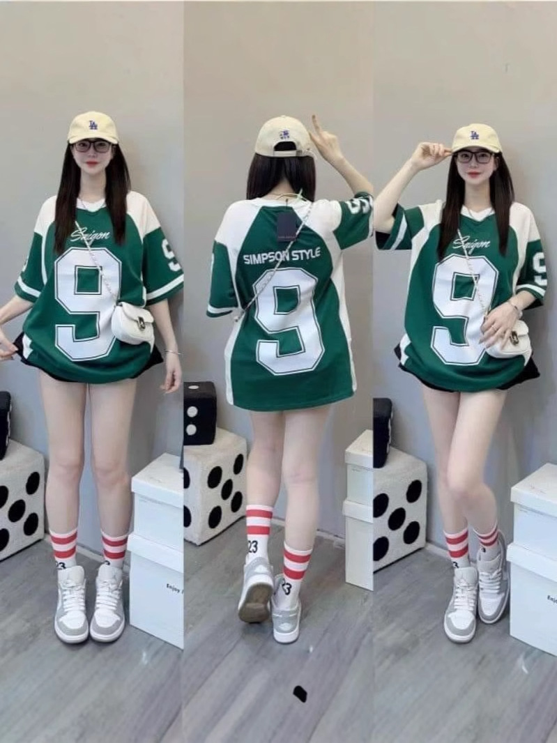 Kaus Lengan Panjang Wanita Lengan Pendek Warna Kontras Olahraga Kasual Jalan Tinggi Amerika Atasan Lengan Setengah Panjang Motif Cetak Longgar Musim Panas
