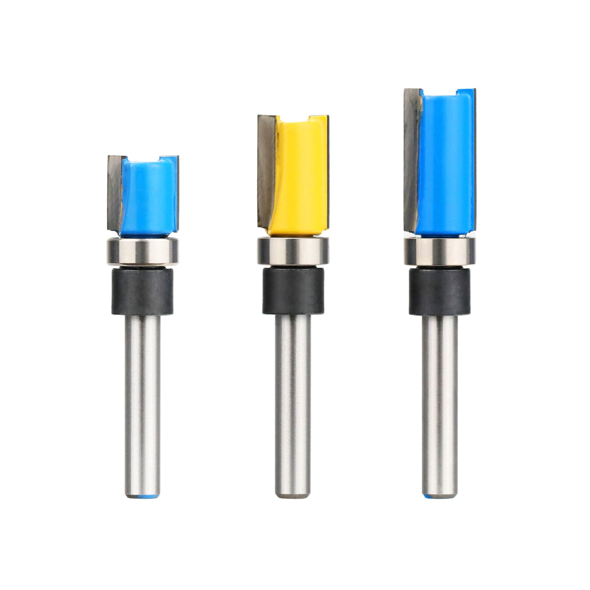 木工铣刀仿型修边刀 带轴承修边机刀头1/4柄直刀锣刀开槽雕刻刀具