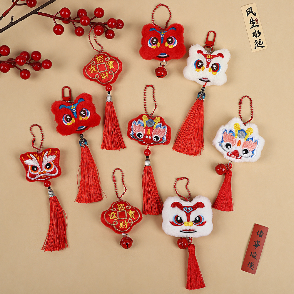 中国风新年醒狮喜庆伴手礼品好运包包汽车挂件国潮风家居装饰品
