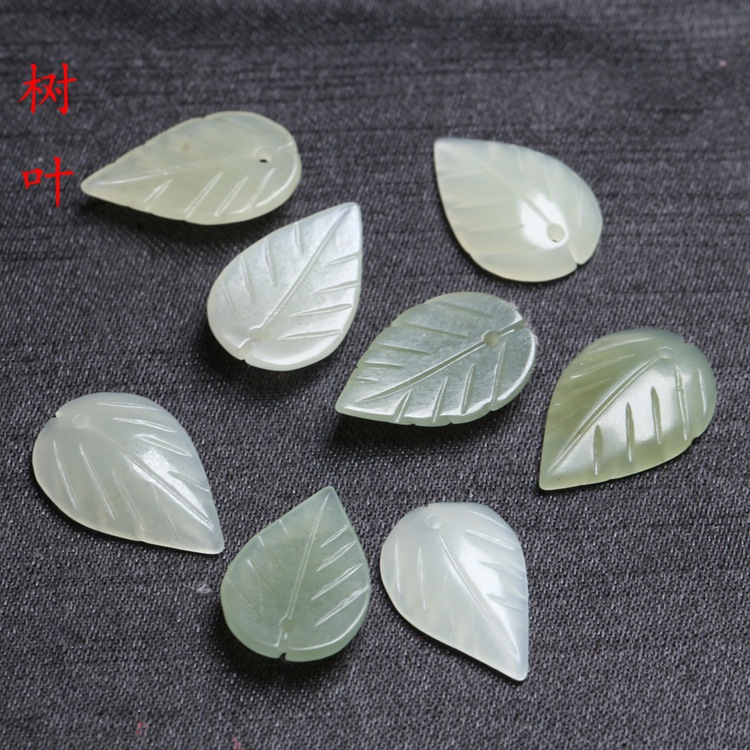 13x19mm Yuantong Hetian liontin daun giok DIY anting Gelang Kalung Antik Aksesori jepit rambut