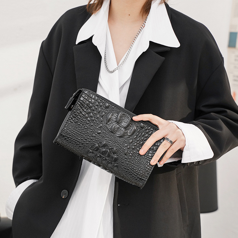 Tas Genggam Tas Tangan Pria Sederhana Kasual Tas Genggam Bahan Kulit Jalanan Model Baru Gaya Korea Tas Pergelangan Tangan Pola Buaya Modis
