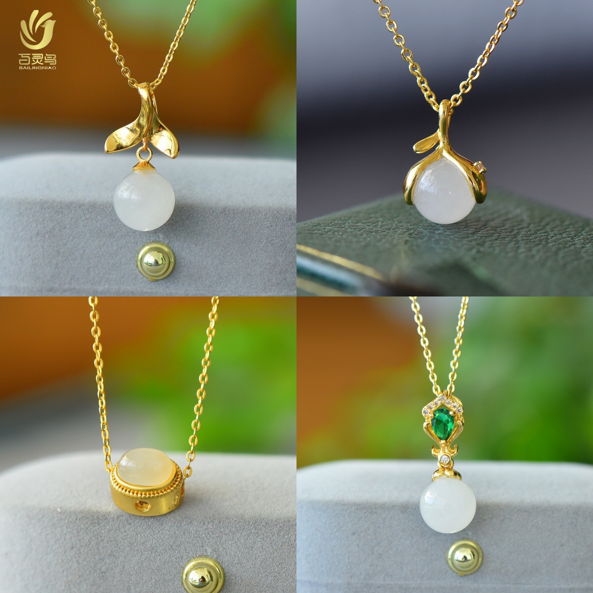 Tembaga bertatahkan giok putih giok bulat manik-manik mode liontin giok alami rantai klavikula pasokan langsung grosir