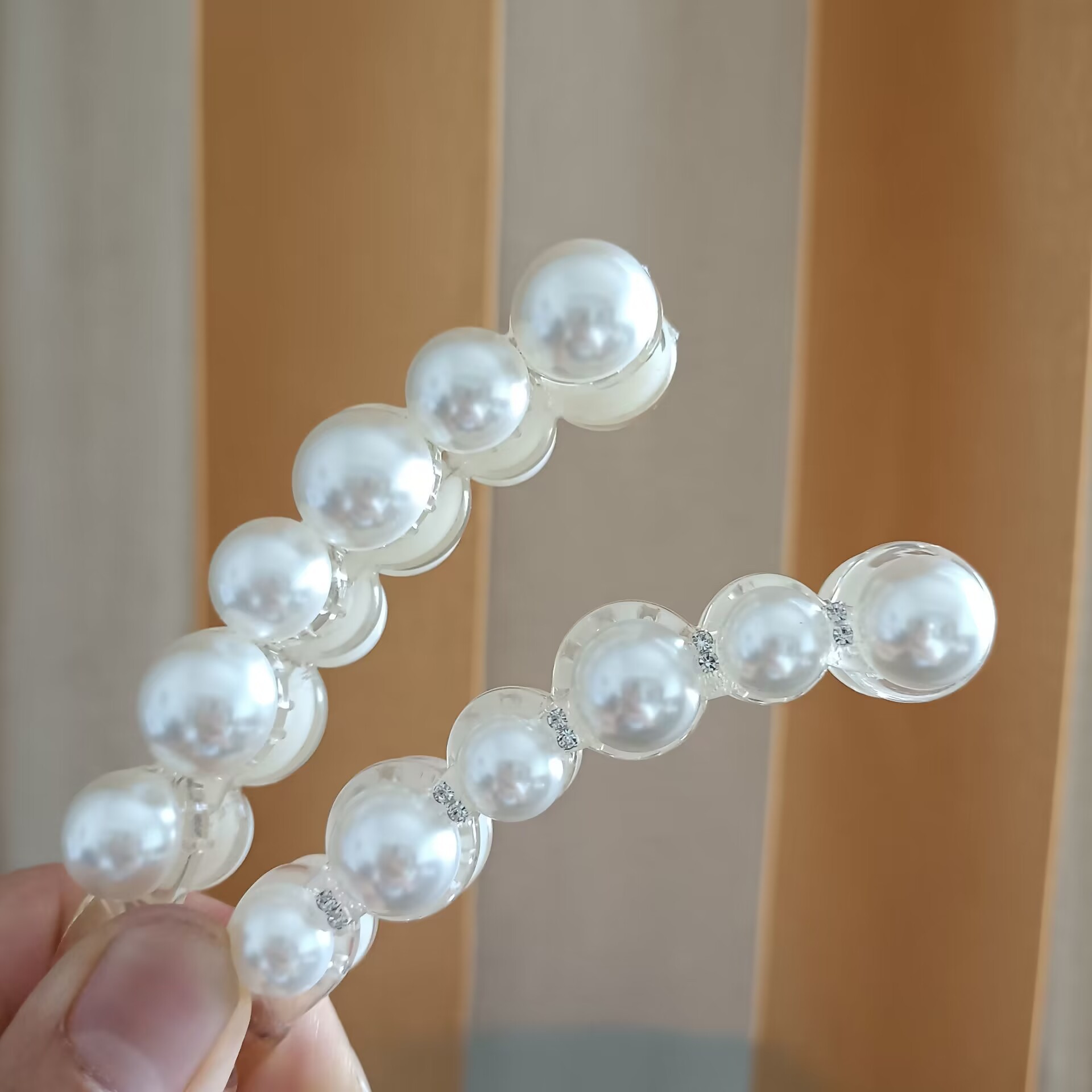 Klip pisang sederhana manis jepit rambut ekor kuda mutiara, jepit rambut klip ekor kuda elegan klip vertikal updo kepala putar