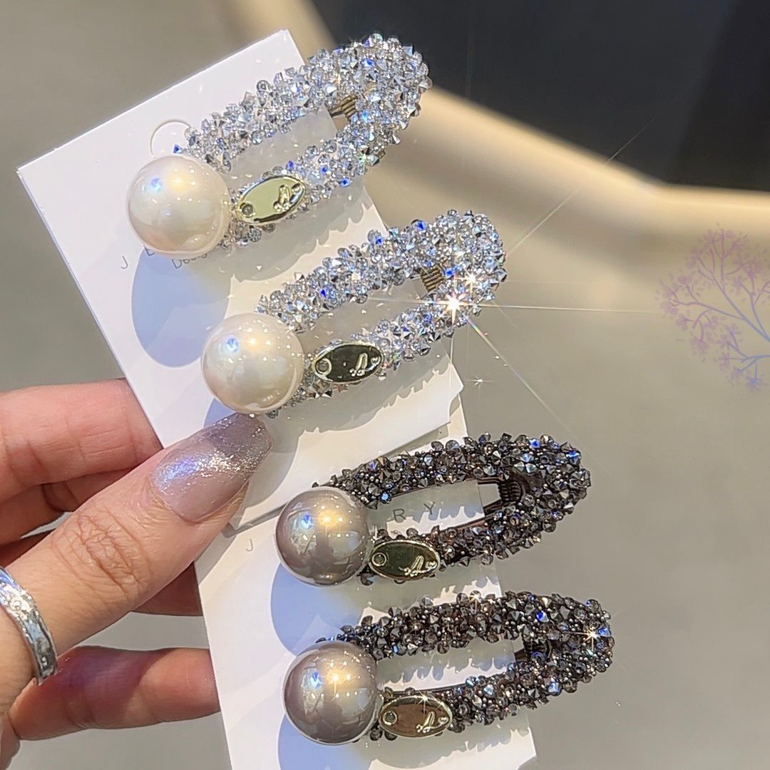 韩版时尚小香风珍珠鸭嘴夹精致闪钻刘海夹精致侧边碎发夹发卡发饰