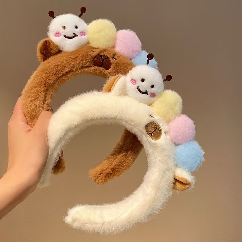 可爱卡皮巴拉毛毛虫发箍毛绒水豚高颅顶洗脸化妆头箍秋冬美拉德女