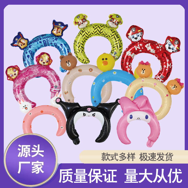Hiasan kepala hewan kartun Hari Anak, balon dorong hadiah balon telinga kelinci bando cetakan balon