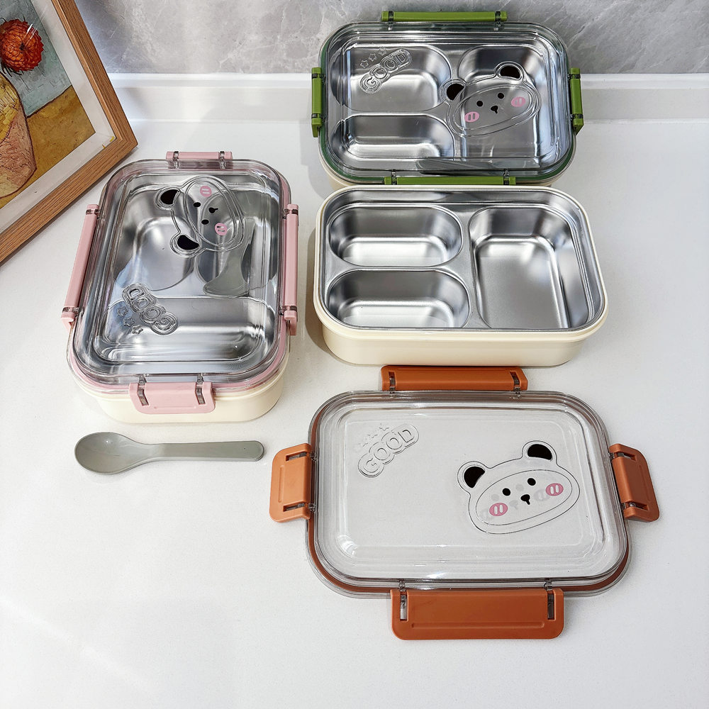 大容量不锈钢饭盒双层保温加热午餐盒学生上班族长方形便当盒批发
