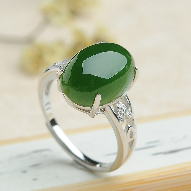 Xinjiang Hetian cincin giok 925 cincin giok perak jade Wanita cincin giok dengan sertifikat