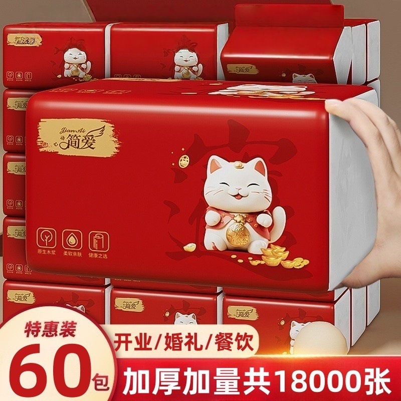 Handuk Kertas Pembukaan Kertas Kucing Keberuntungan Serbet Handuk Handuk Kertas Perembahan Merah Kertas Tisu Wajah Ekstra Tebal Kertas Toilet Seluruh Kotak