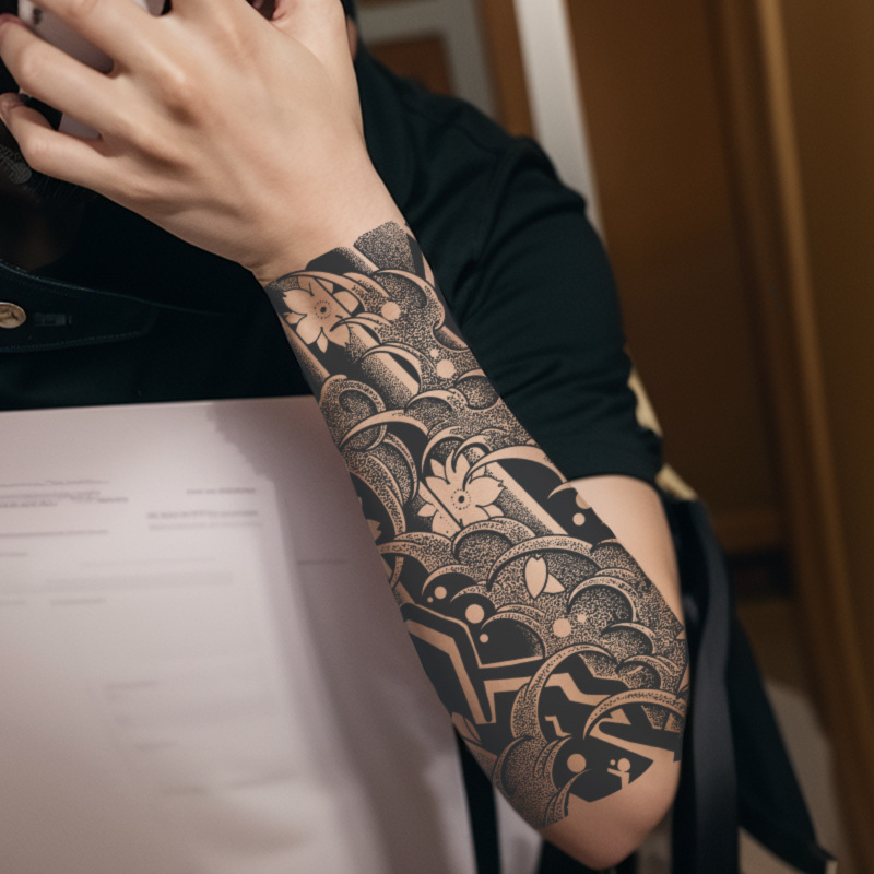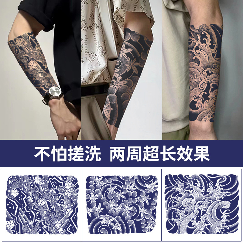 小臂全包草本纹身贴防水男持久仿真半臂手臂潮流半永久高级感新款