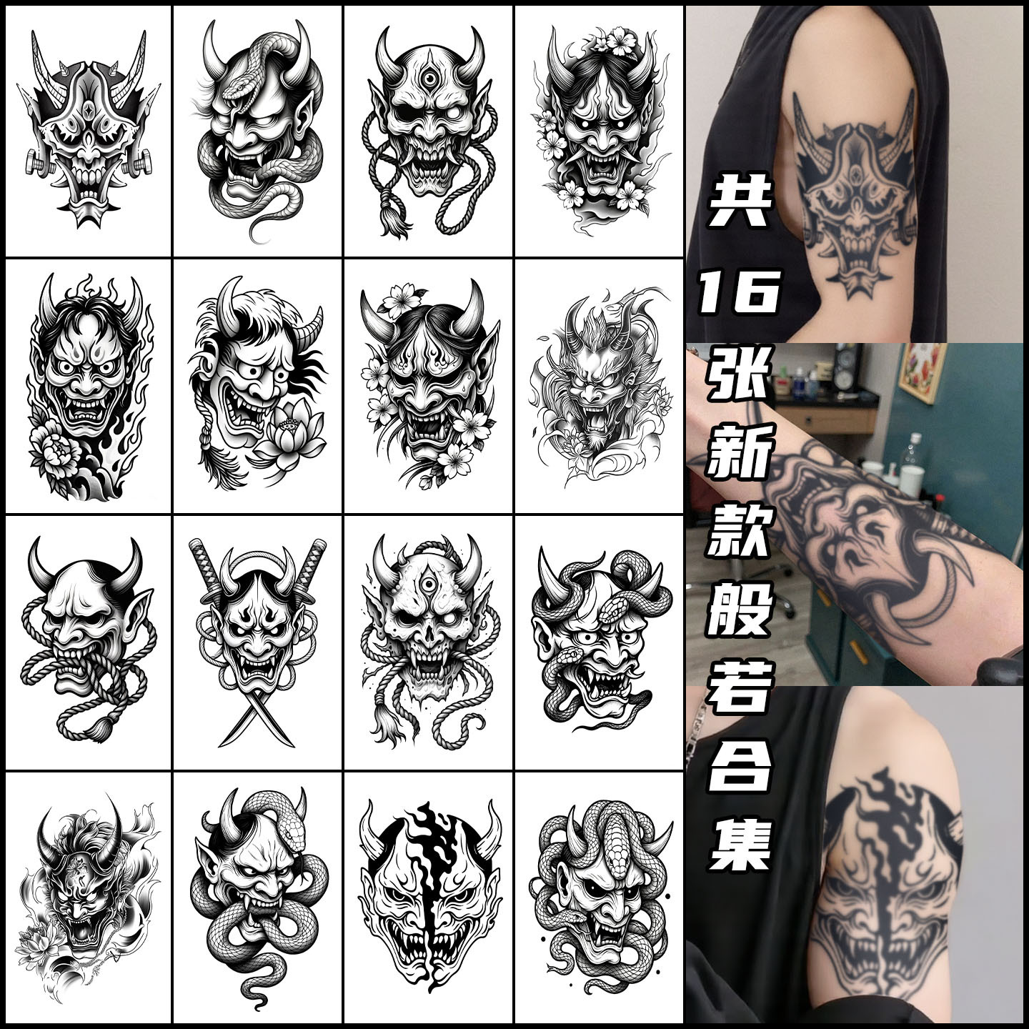 2025新款爆款般若鬼面霸气纹身贴男女半臂胸部刺青防水持久贴纸