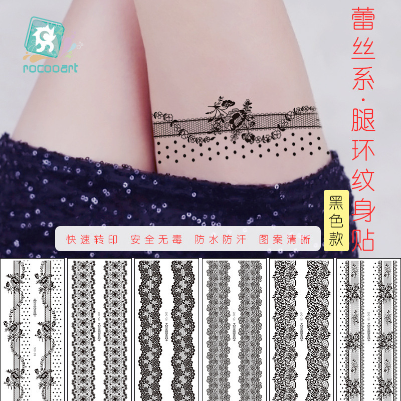 Seksi gelang renda hitam stiker tato cincin kaki kembali stiker tato makeup selfie busur tato