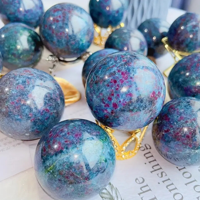 跨境热销天然水晶原石打磨红蓝绿宝水晶球摆件家居办公装饰品批发