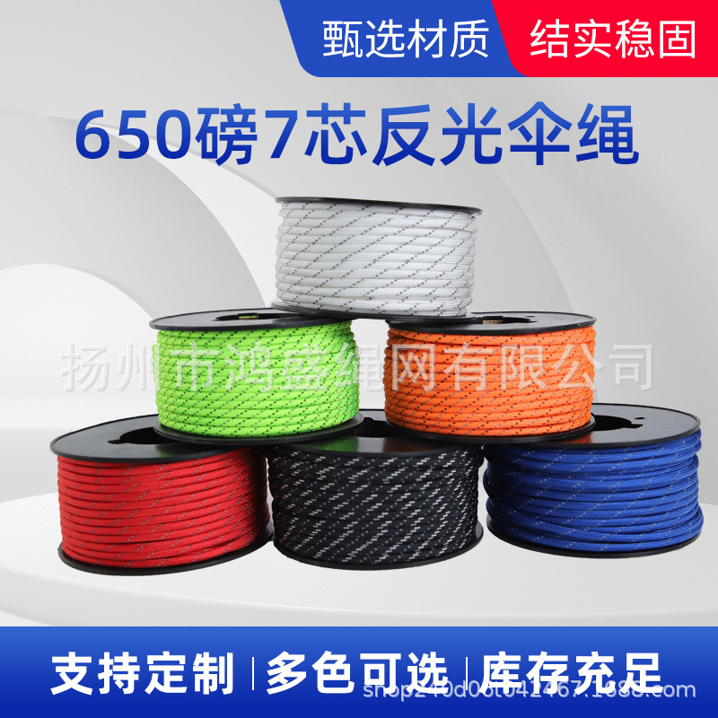 Tali parasut luar ruangan kapasitas bantalan tali reflektif 650 pon 7-core tali payung reflektif 31 m tali tenda pengikat Kemah pendakian gunung