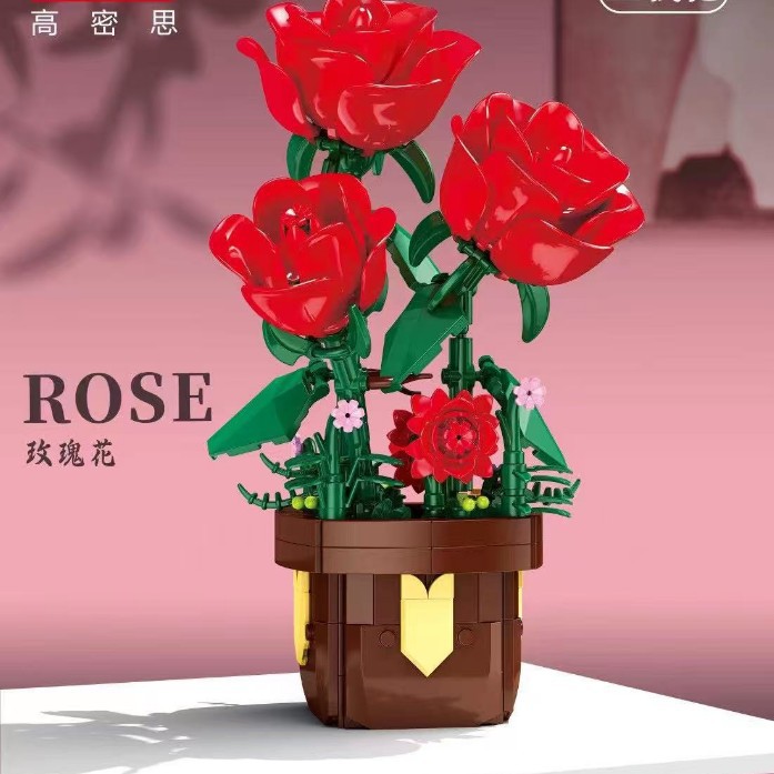 兼容乐高积木盆栽多肉永生花束玫瑰花女孩系列拼装摆件玩具批发