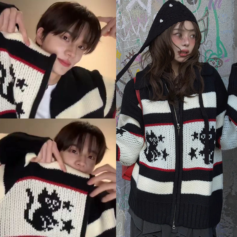 秋冬新品韩国东大门申ins惟圣诞猫咪星星提花费尔岛毛衣针织外套
