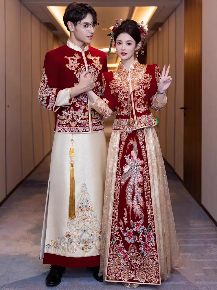 Pakaian Beludru Pakaian Pernikahan Pengantin Wanita Model Baru 2025 Pakaian Pernikahan Gaya Tiongkok Pakaian Bersulang Ukuran Besar Pakaian Pernikahan Musim Semi dan Musim Panas