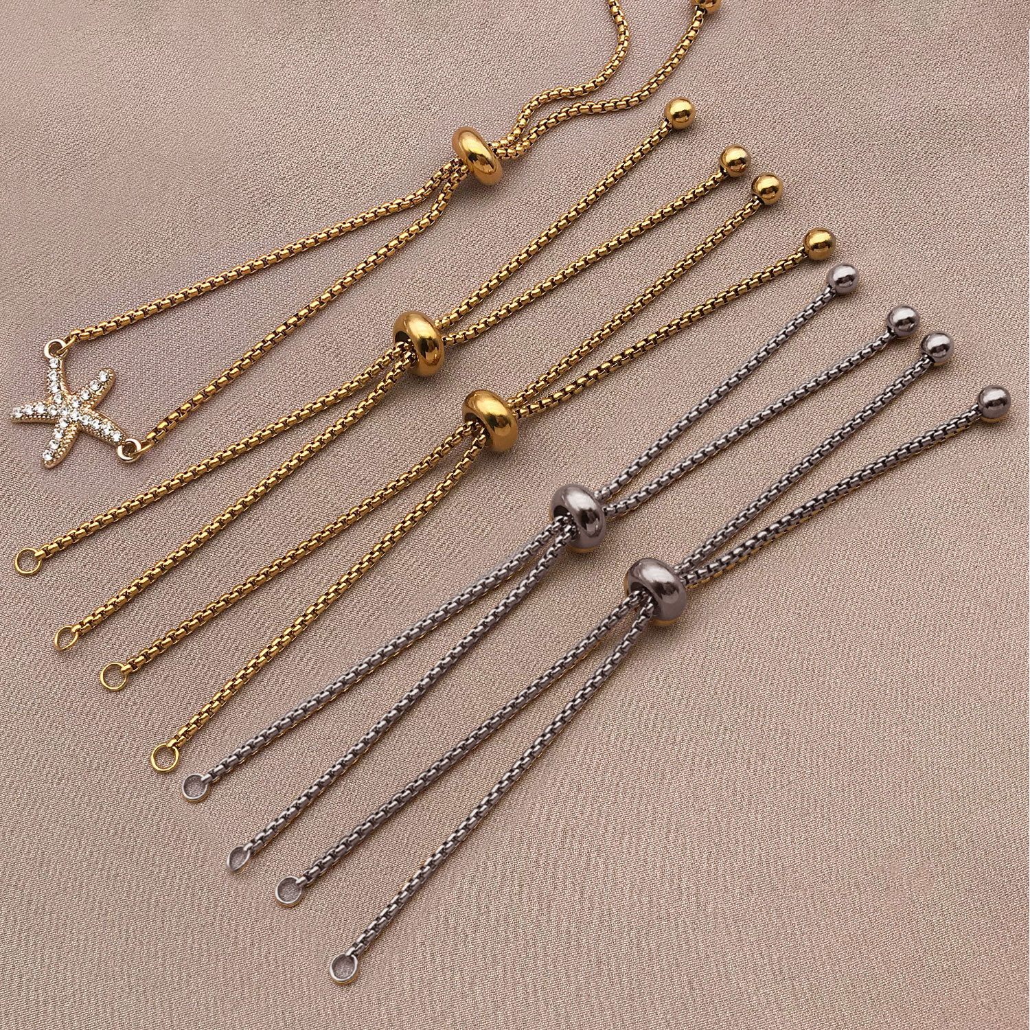 Stok tersedia manik-manik pemosisian besi tahan karat putih melalui lubang plastik manik-manik gelang manik-manik dapat disesuaikan yang mengandung aksesoris manik-manik baja silikon