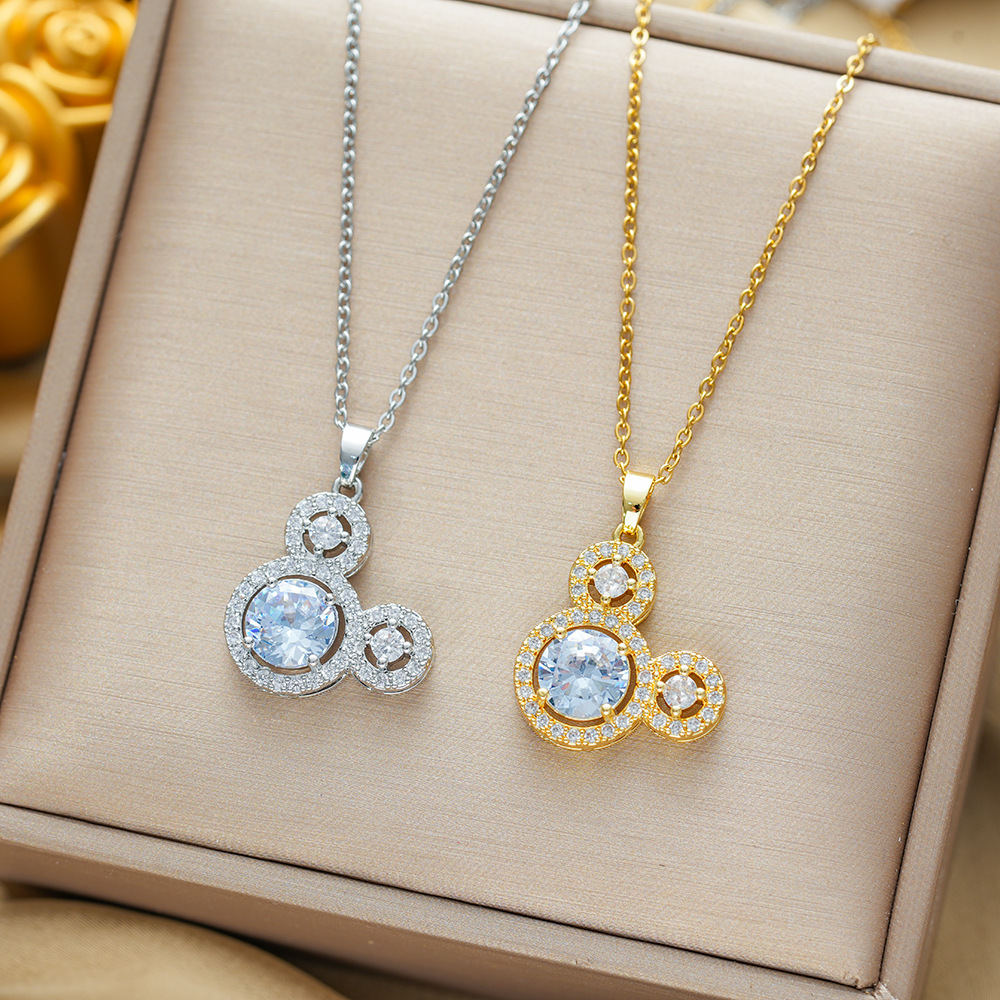 【钛钢】跨境欧美满钻微镶锆石米奇头项链女时尚简约米老鼠锁骨链