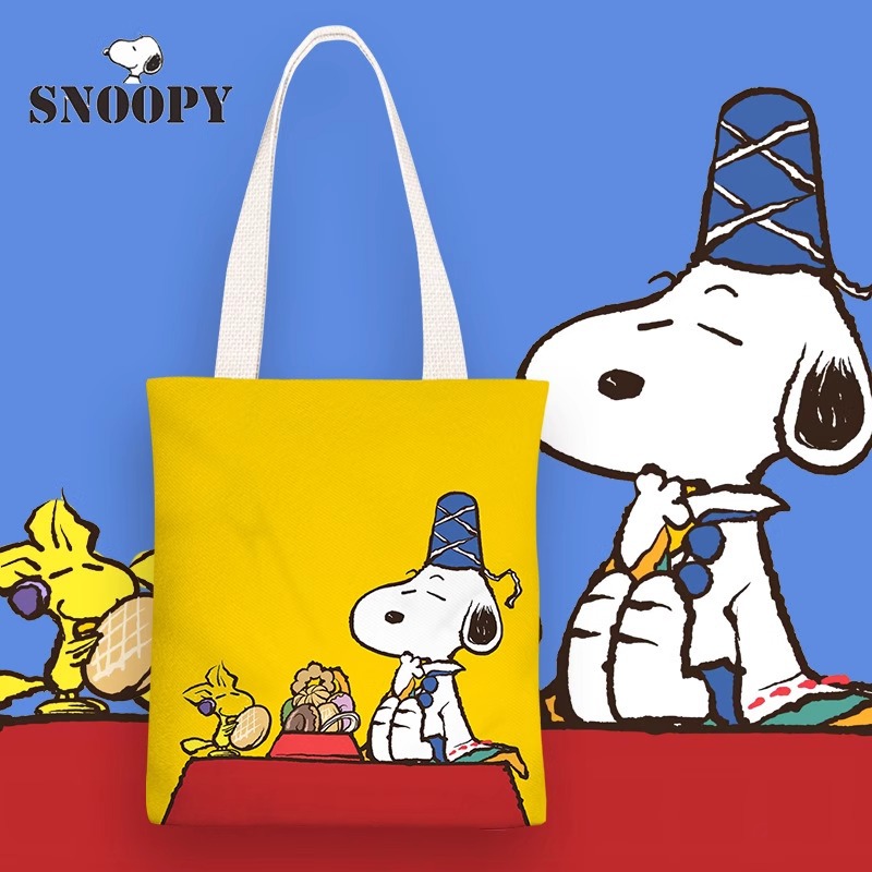 Snoopy Tas Kanvas Anime Tas Sederhana Bahu Tunggal Wanita Tas Belajar Siswa SMP Kecil Tas Jinjing Belanja Kelas
