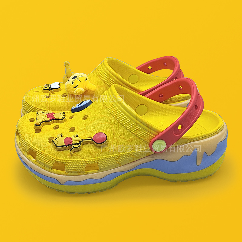 cross维尼熊云朵洞洞鞋女新款包头拖鞋厚底增高原版沙滩鞋带鞋花