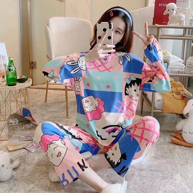 Piyama lengan panjang wanita, baju tidur ukuran besar pakaian rumah Musim Semi dan Gugur musim panas gaya Korea luar ukuran besar