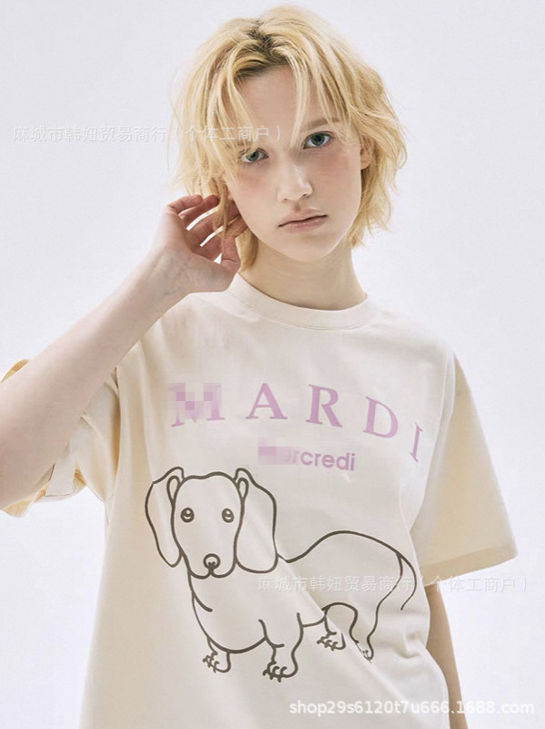 现货韩国Mardi短袖女经典款雏菊金高银同款腊肠狗t恤上衣