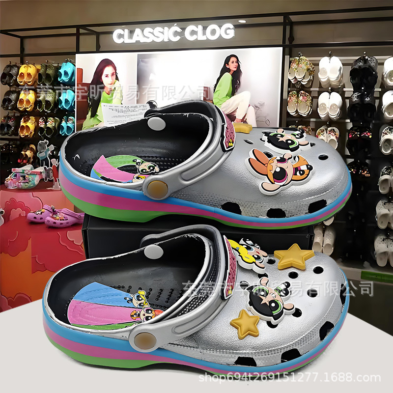 cross飞天女警儿童洞洞鞋夏季新款中大童男童女童沙滩鞋卡通凉鞋