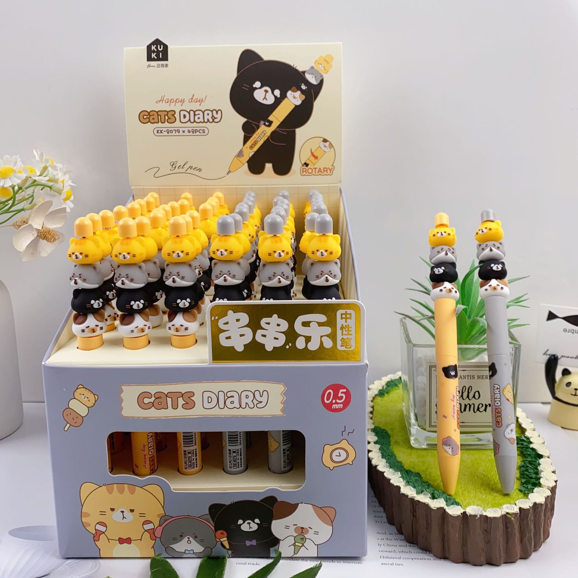 新款创意串串乐中性笔可爱猫咪造型DIY串串签字笔高颜值水性笔