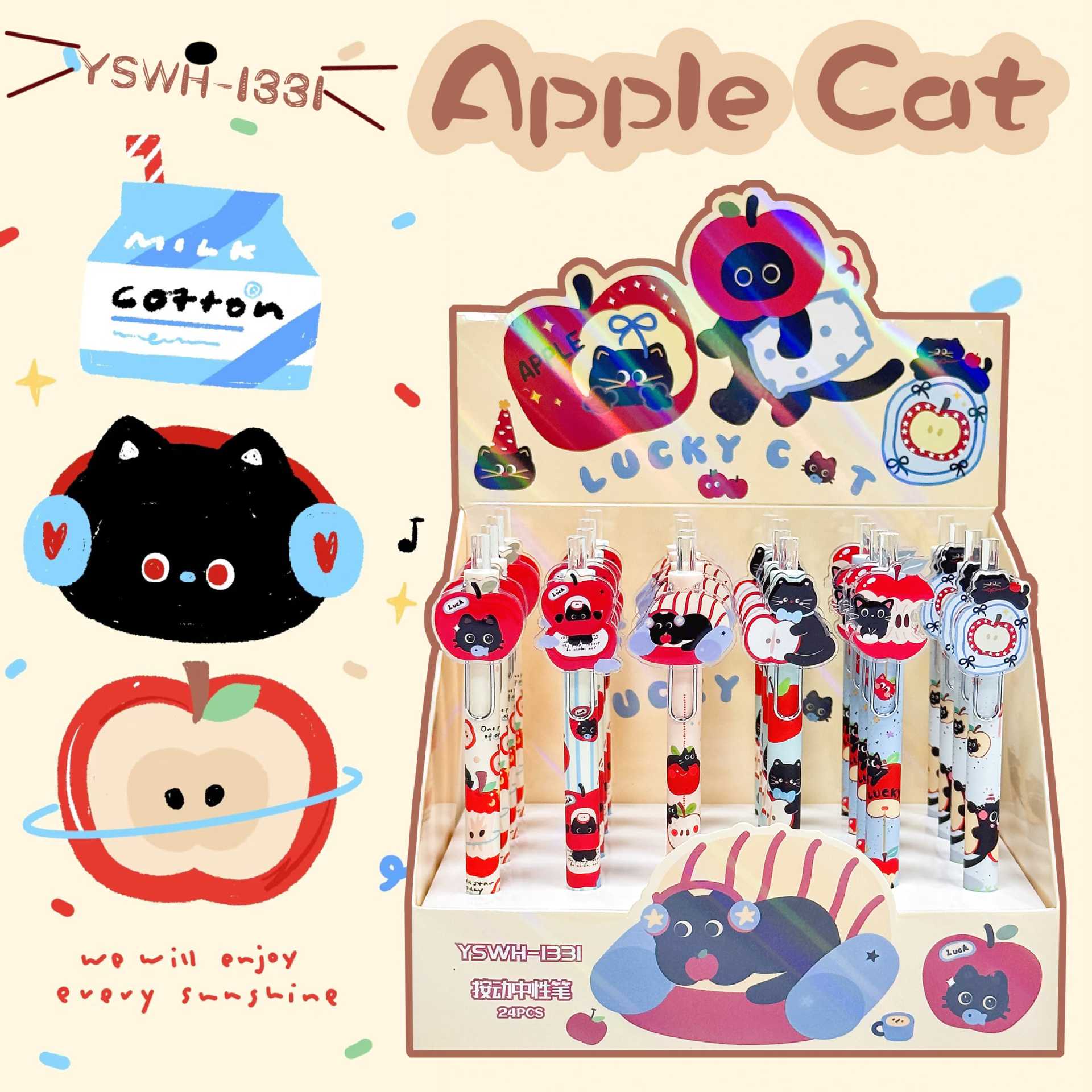 YSWH苹果猫中性笔高颜值精美卡通贴片ST笔头书写顺滑按动水笔黑