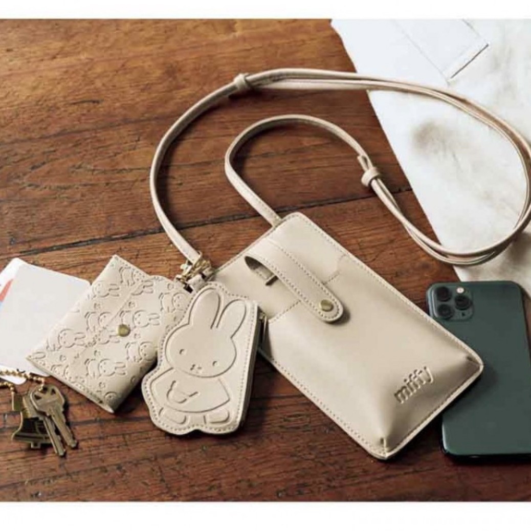 Miffy Jepang Tas Ponsel Selempang Dompet Kartu Kartu Kartu Uang Kecil Lucu Kartun Gantungan Kunci Gantungan Tiga Set
