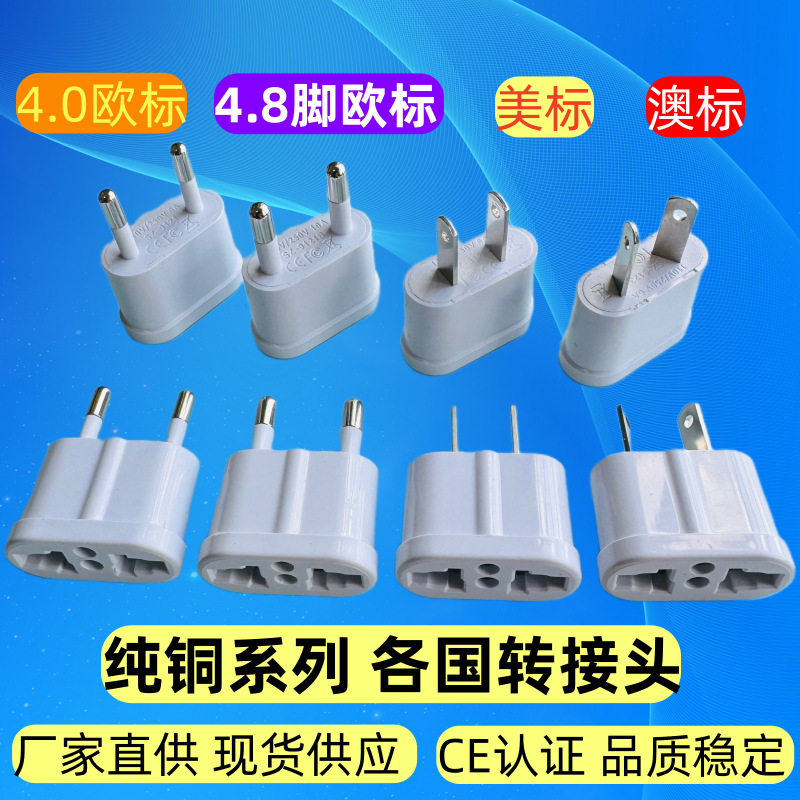 纯铜小欧标4.0美标转换插头4.8MM欧规德标韩规插座转接头电源插头