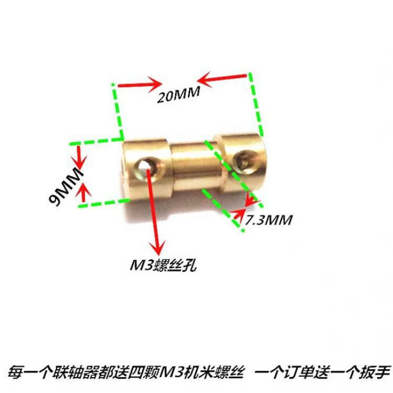 黄铜小型联轴器变径电机轴转化增长2/2.333.17456mm连轴器