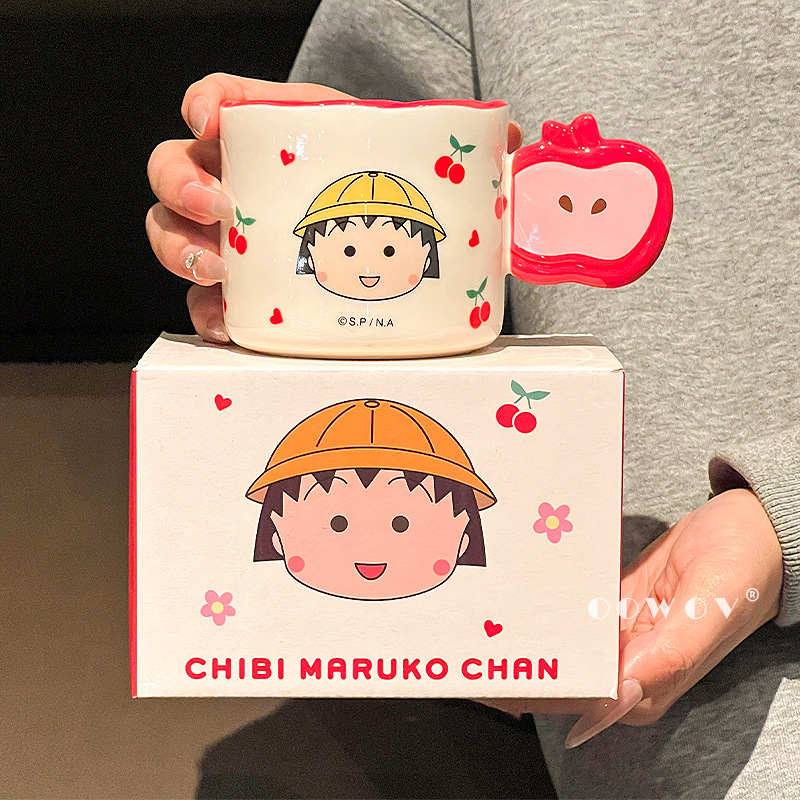 樱桃小丸子支架杯高颜值马克杯个性陶瓷杯可爱情侣杯办公室喝水杯