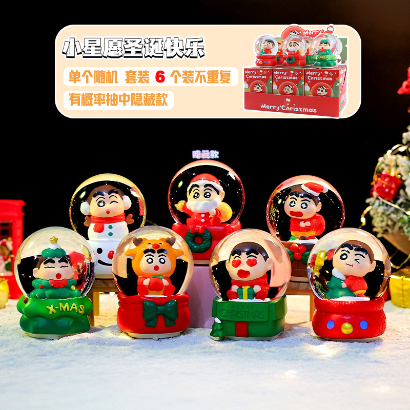 可爱萌趣小星愿圣诞快乐80#水晶球盲盒摆件圣诞节小礼品厂家直销