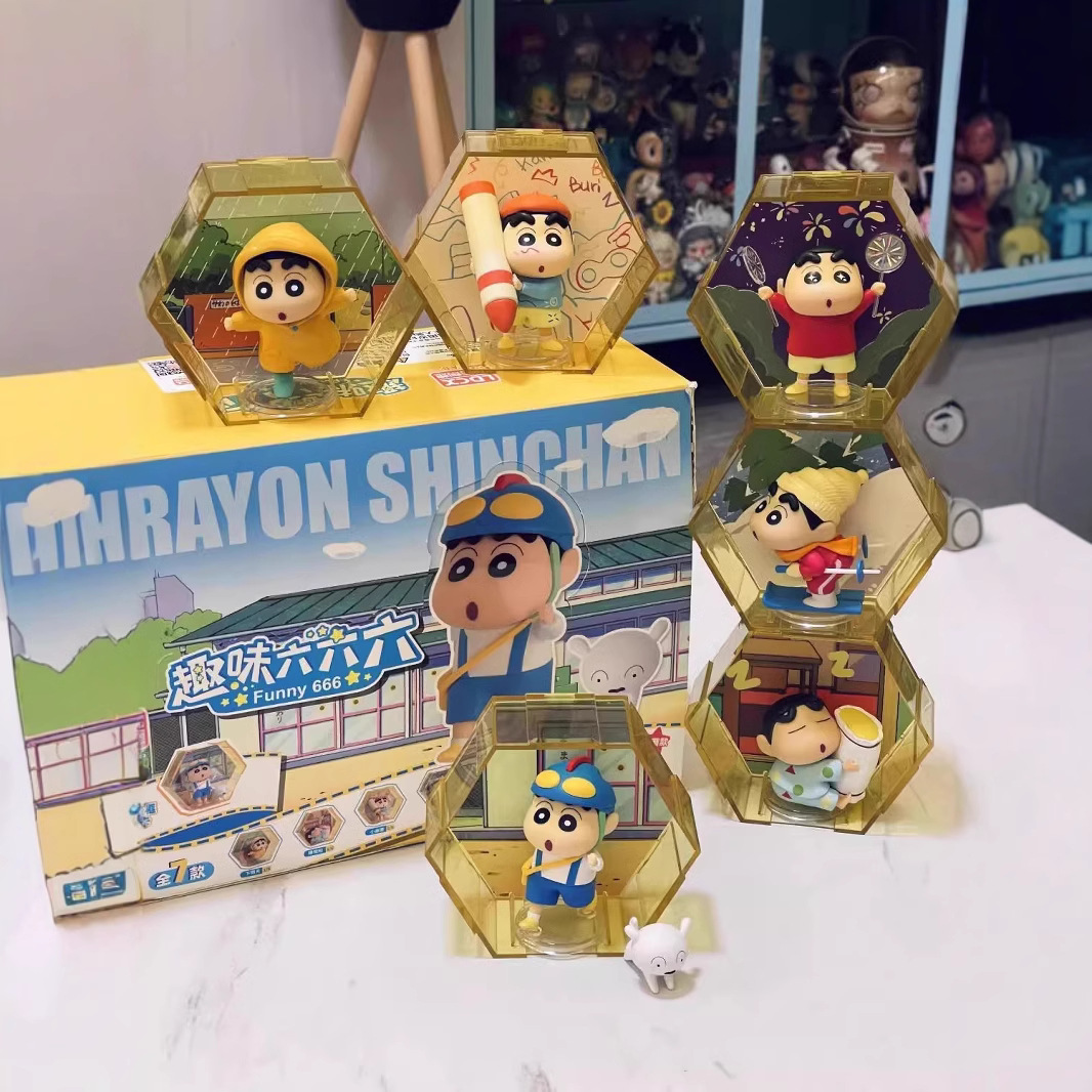 正版蜡笔小新趣味六六六系列蜡笔小新6宫格摆件场景创意手办公仔
