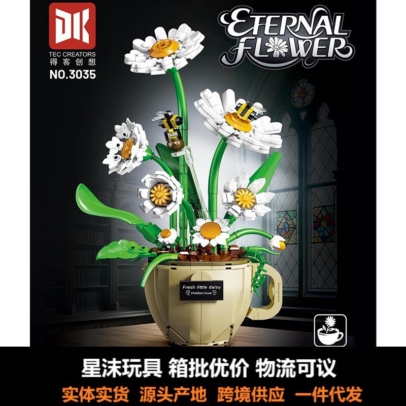 得客创想3035咖啡杯雏菊植物情人节玩具摆件益智拼搭积木跨境批发