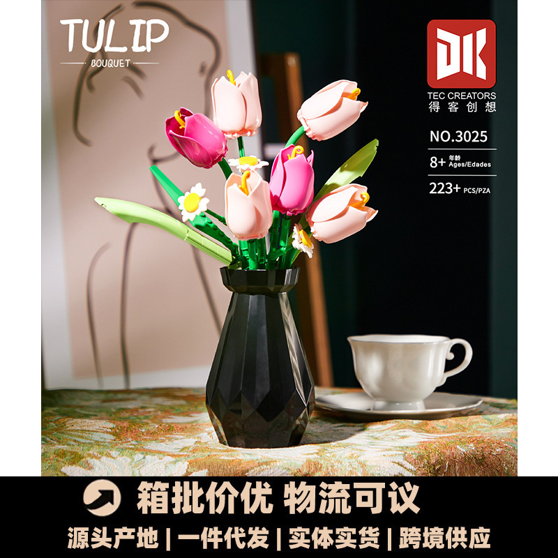 Vas Bunga Pengiriman Tulip 3025 Mainan Blok Bangunan Teka-teki Anak-anak Hadiah Ulang Tahun Mainan Lintas Batas