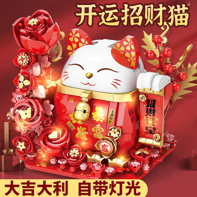 Kucing Keberuntungan Hadiah Perayaan Pembukaan Toko Baru Ornamen Blok Bangunan Edukatif Dekorasi Rumah Kucing Keberuntungan Hadiah Mainan