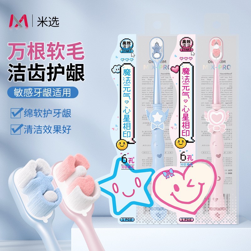 可爱晕了~仙女棒牙刷心星魔法棒软毛宽头家用女成人情侣软毛牙刷