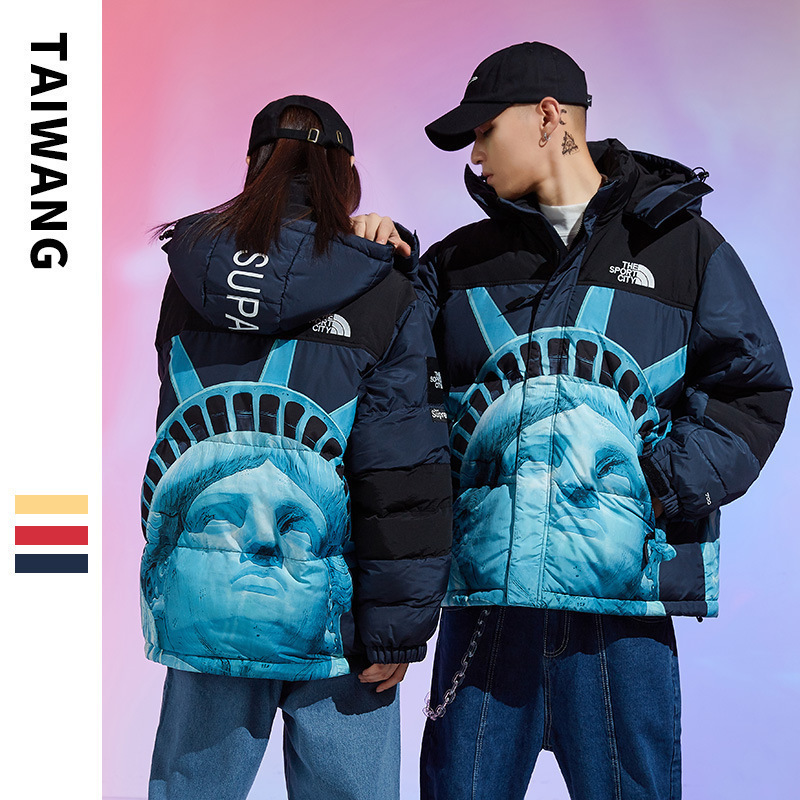 光版自由女神男女同款棉衣男年冬季新款男装外套男潮牌宽松棉服男